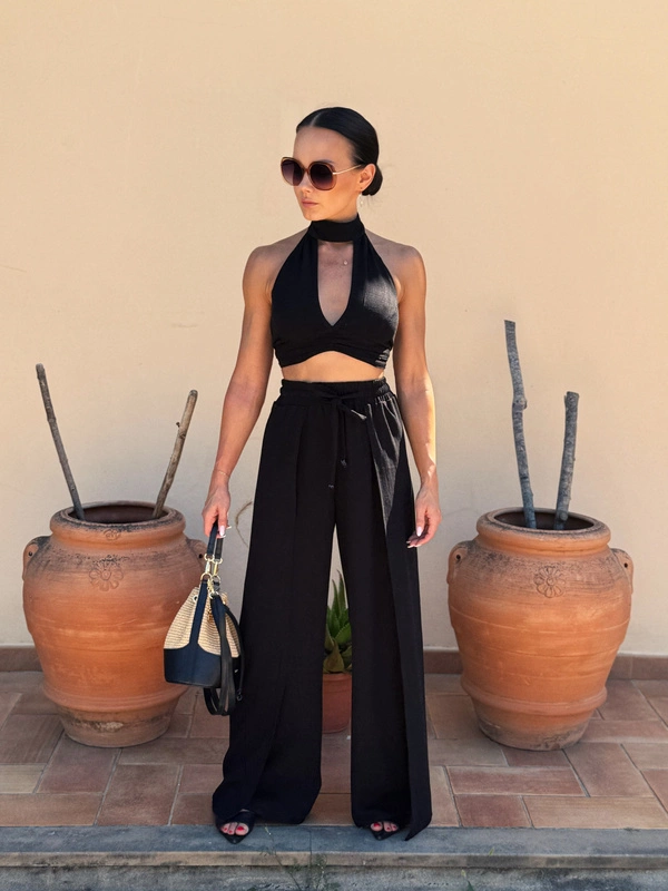 Maja Top – halter top tied at the neck and back, made of linen and viscose, black