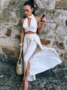 Maja Top – halter top tied at the neck and back, made of linen and viscose, light beige