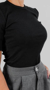 Bluzka z dzianiny prążkowanej z długim rękawem i poduszkami barkowymi